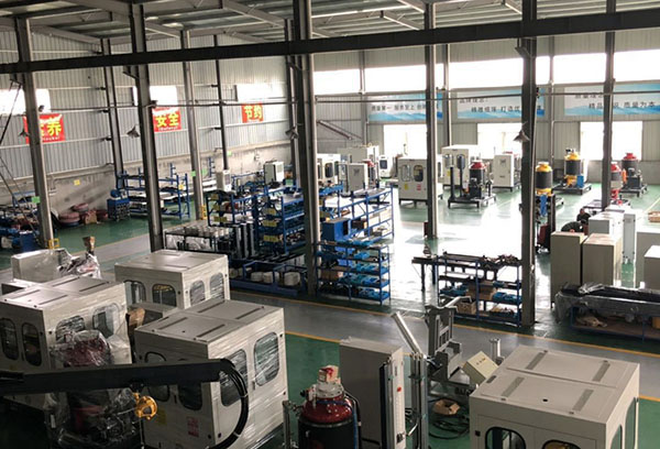 聚氨酯發(fā)泡機本身是不能憑空產(chǎn)出泡沫來的,它是將空氣引入發(fā)泡劑水溶液中均勻分散,實現(xiàn)液氣盡可能大的接觸面,以使發(fā)泡劑中的表面活性物在液膜表面形成雙電層并包圍空氣,形成一個個氣泡